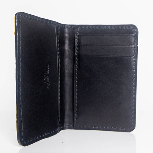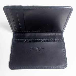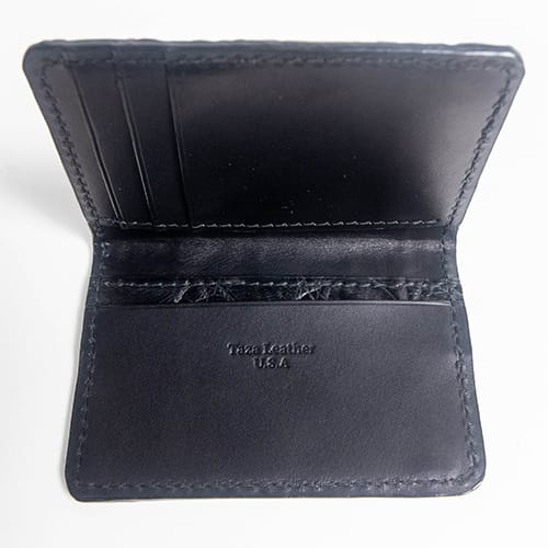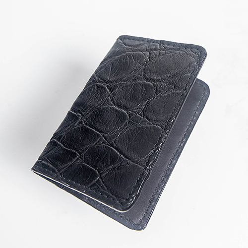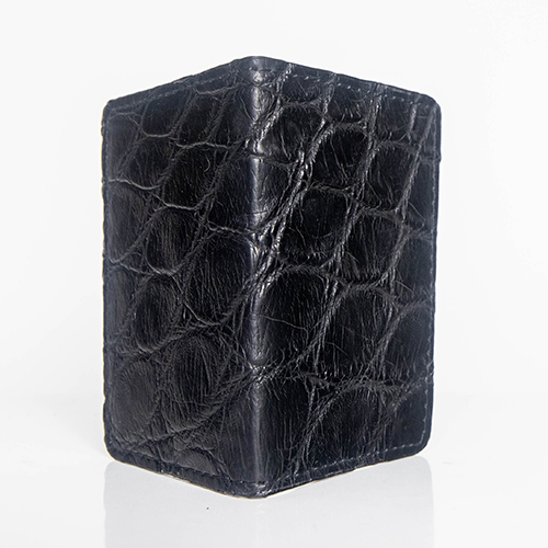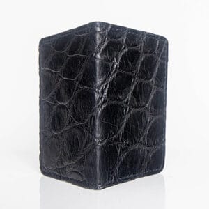 Experience the refined utility of our slim front pocket wallet, crafted from genuine American Alligator skin in a deep, elegant black finish. Designed for minimalism without sacrificing luxury, this handcrafted piece features a smooth English bridle leather interior for long-lasting structure and sophistication.
