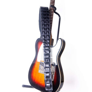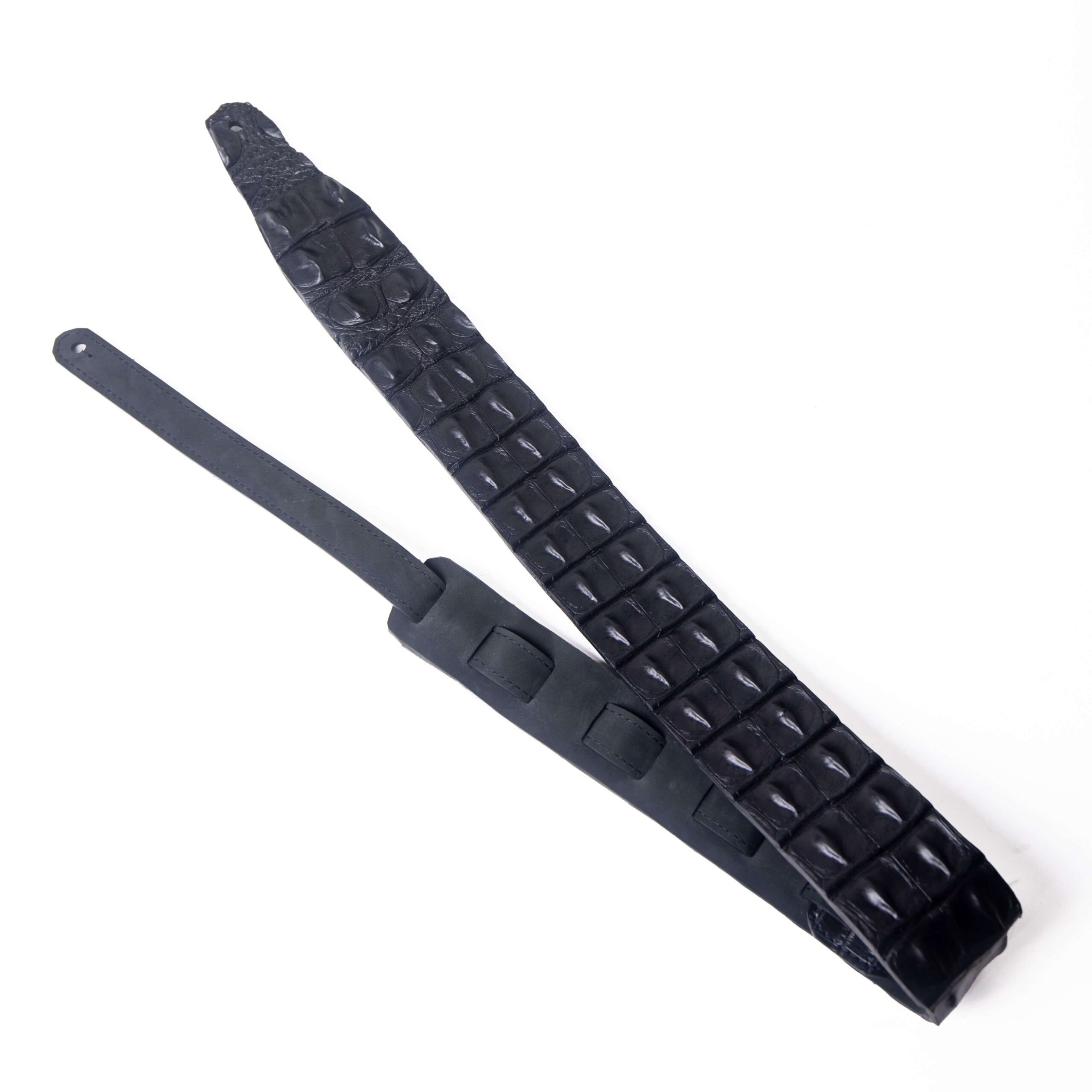 Crafted in our Melbourne, Florida studio, this Black Hornback Crocodile Guitar Strap embodies the raw beauty of exotic materials refined through traditional craftsmanship. Each strap is cut from genuine hornback crocodile skin, showcasing the bold, raised ridges that make every piece unmistakably one of a kind.