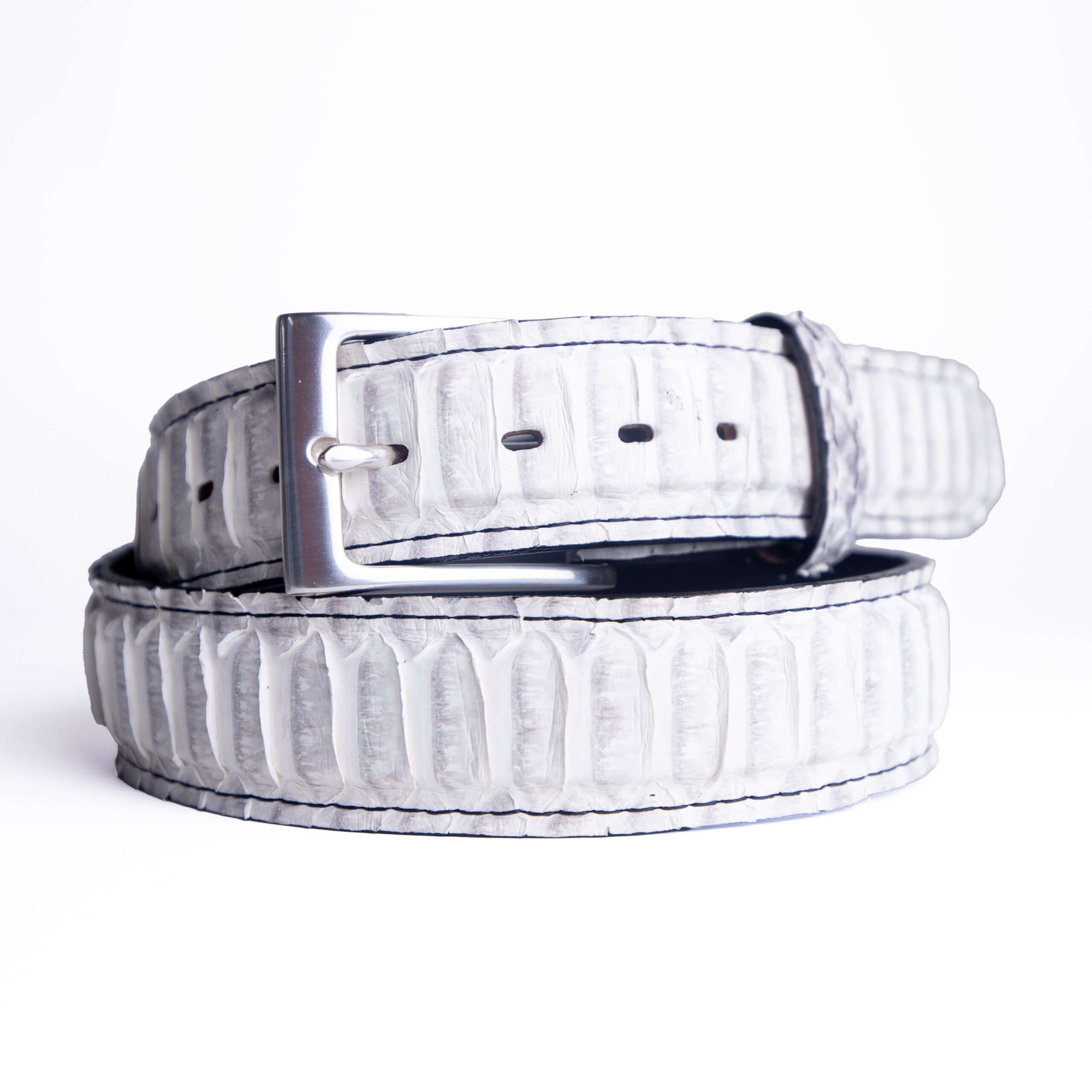 Elevate your wardrobe with this Natural Color Python Belt, handcrafted from genuine python skin and backed with full-grain English bridle leather. Each belt showcases the exotic, flowing scale patterns unique to natural python, making it a one-of-a-kind piece that blends rugged texture with refined elegance.