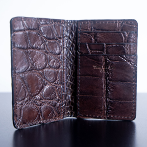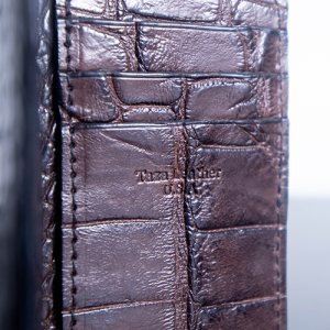 Made with genuine wild American alligator skin inside and outside, this premium edition represents the pinnacle of craftsmanship. The deep brown finish emphasizes the rich texture of the alligator scales, giving the wallet a bold yet refined presence.