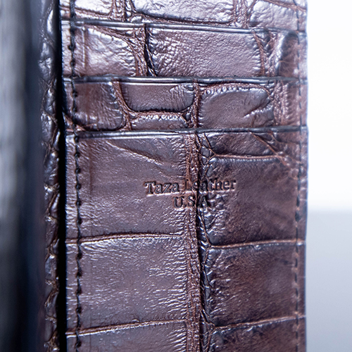 Elevate your everyday carry with the Premium Wild Alligator Front Pocket Wallet in Brown. Crafted by hand in Melbourne, Florida by Taza Leather, this slim wallet combines timeless design with the raw elegance of exotic skins.