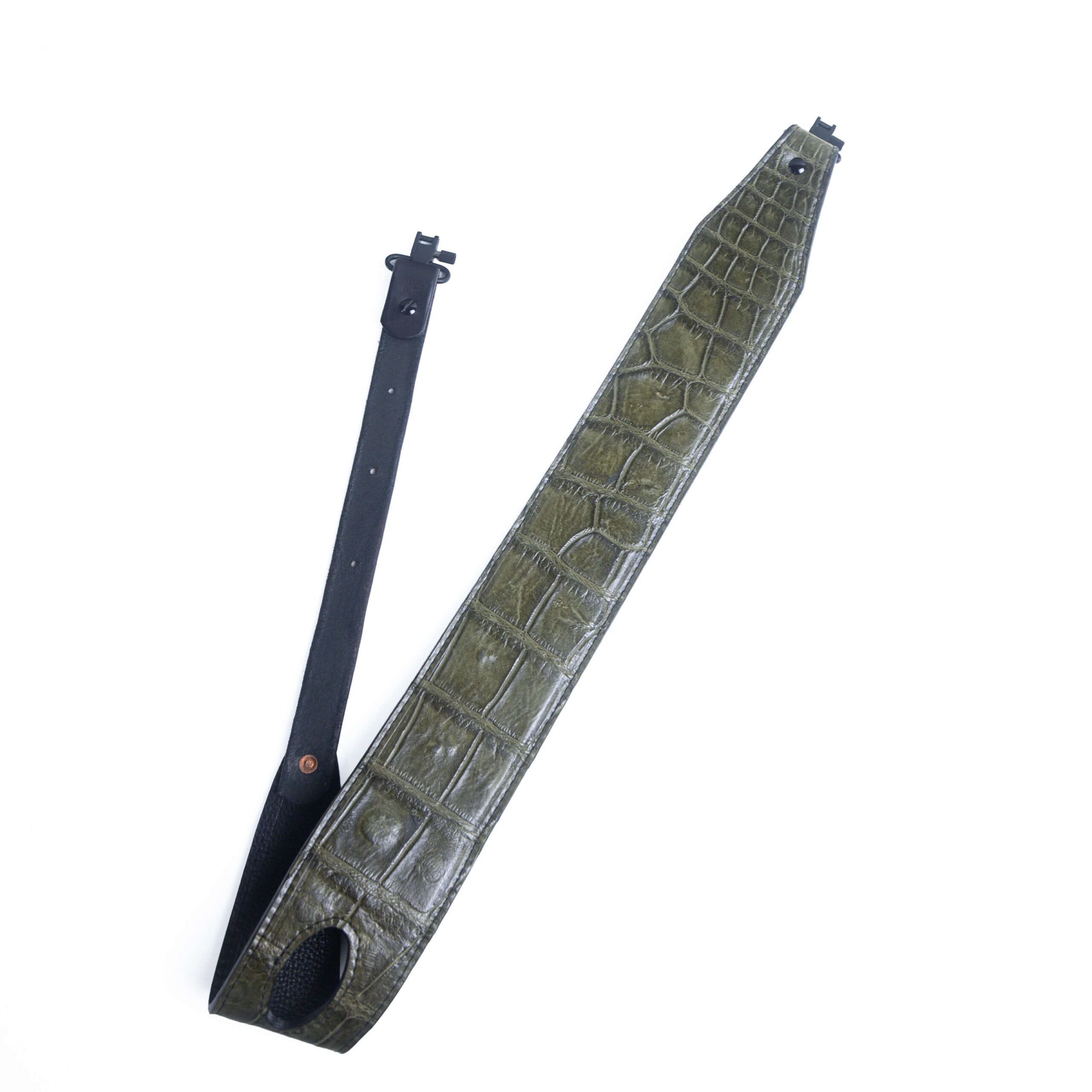 An alligator rifle sling is more than a field accessory—it’s a reflection of craftsmanship, heritage, and intention. With the option of either an HK snap hook or a QD push-button swivel, this sling adapts to your rifle and your style of carry without compromising its refined aesthetic.