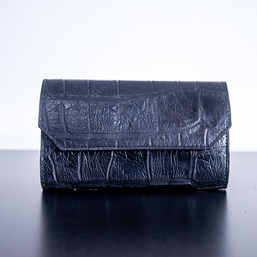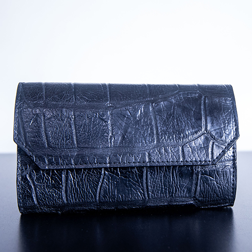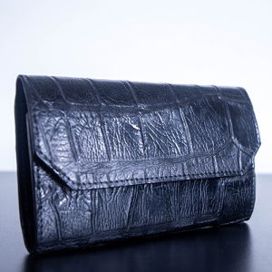 The black-on-black finish gives this clutch a bold, modern edge, making it perfect as a luxury alligator evening clutch or a polished everyday companion.